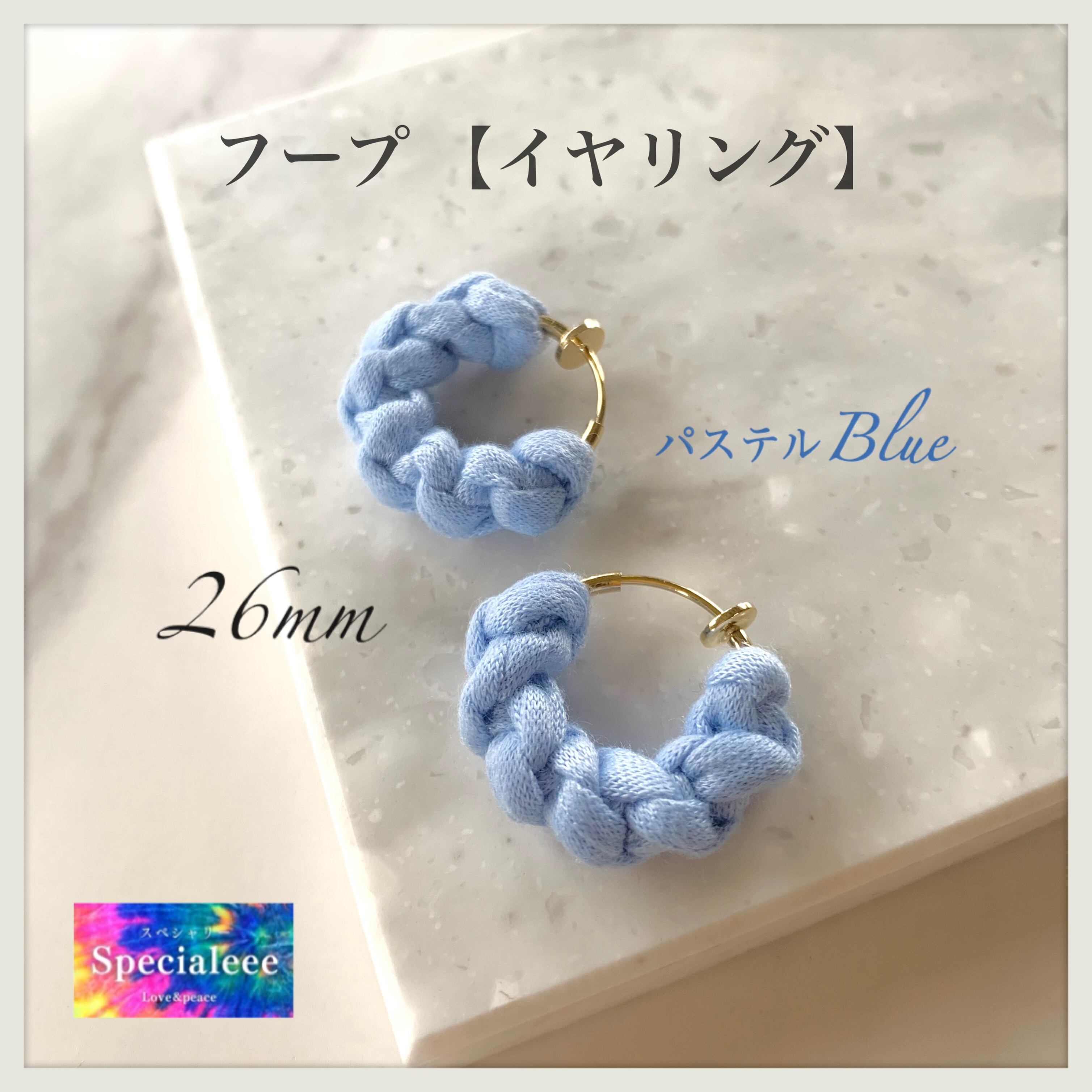 【イヤリング】26mm★パステルブルー太編みフープ★パウダーブルー★水色☆春夏☆カラーコーデ★ハンドメイドアクセサリーspecialeee