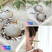 白黒にメタリックのブラウンゴールドを混ぜて編み上げた大ぶりフープピアスです★