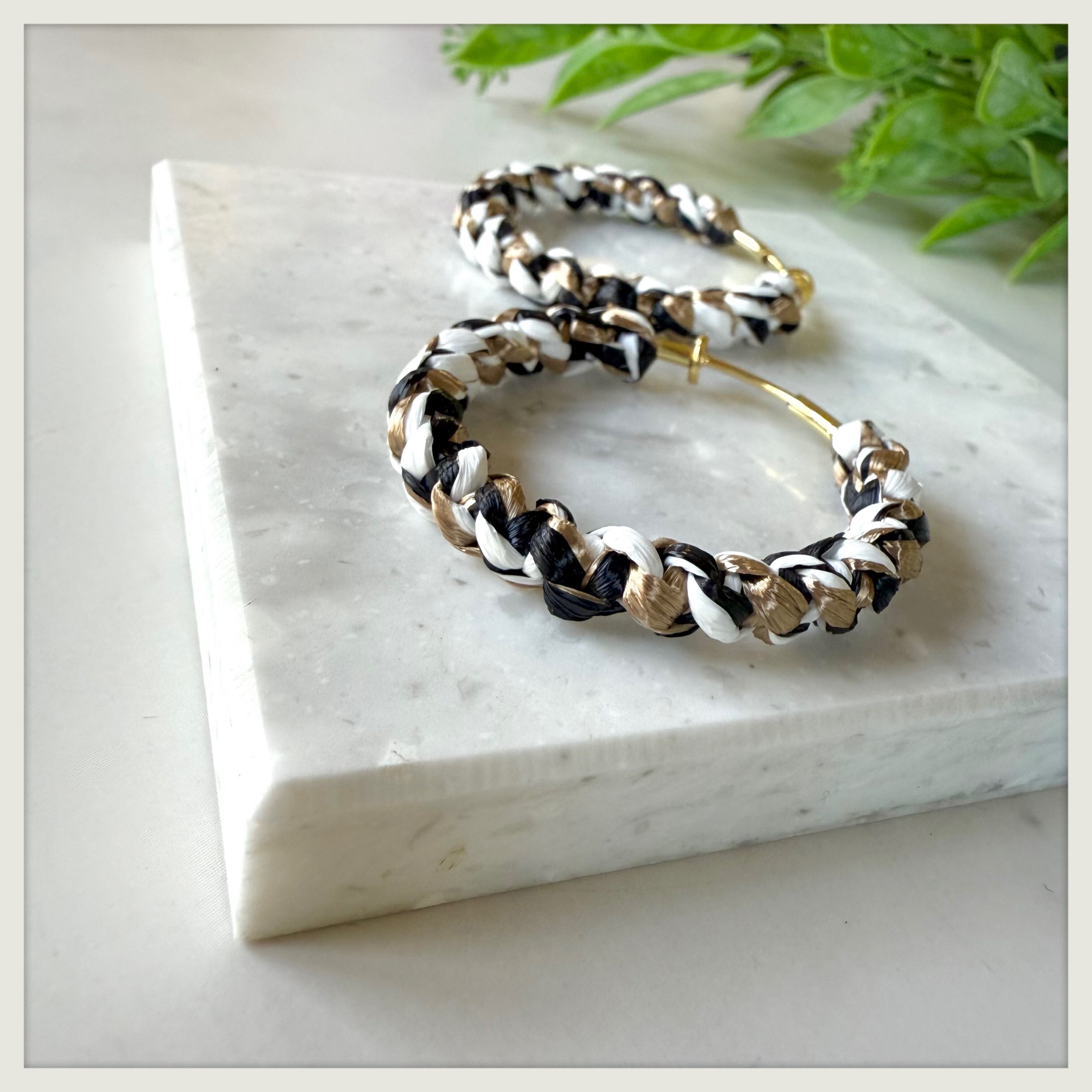 白黒にメタリックベージュゴールドを混ぜて編み上げたお洒落すぎるフープイヤリング★