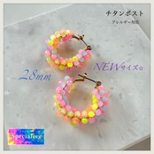 28mm★カラフルポップビーズフープピアス★半スケルトン蛍光★派手可愛いインパクト★チタンポスト★