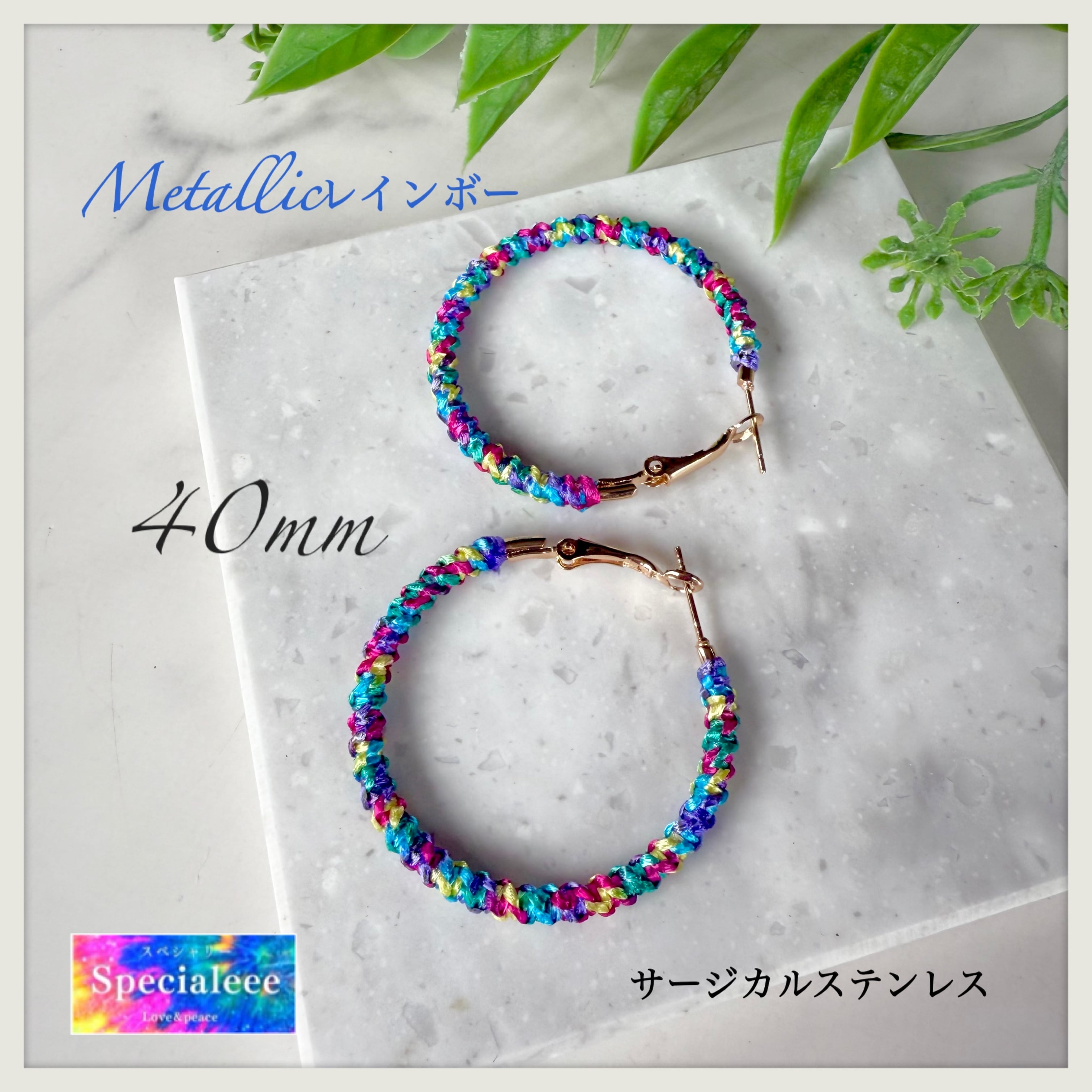 40mm★大人気のメタリックレインボー編みフープピアス★虹色★サージカルステンレス★イヤリング+¥200★派手可愛い★spcialeee