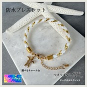 濡れてok★オリジナル防水ブレスレット★白×ゴールド細身シリーズ★サージカルステンレス★選べるチャーム★シルバー作れます★