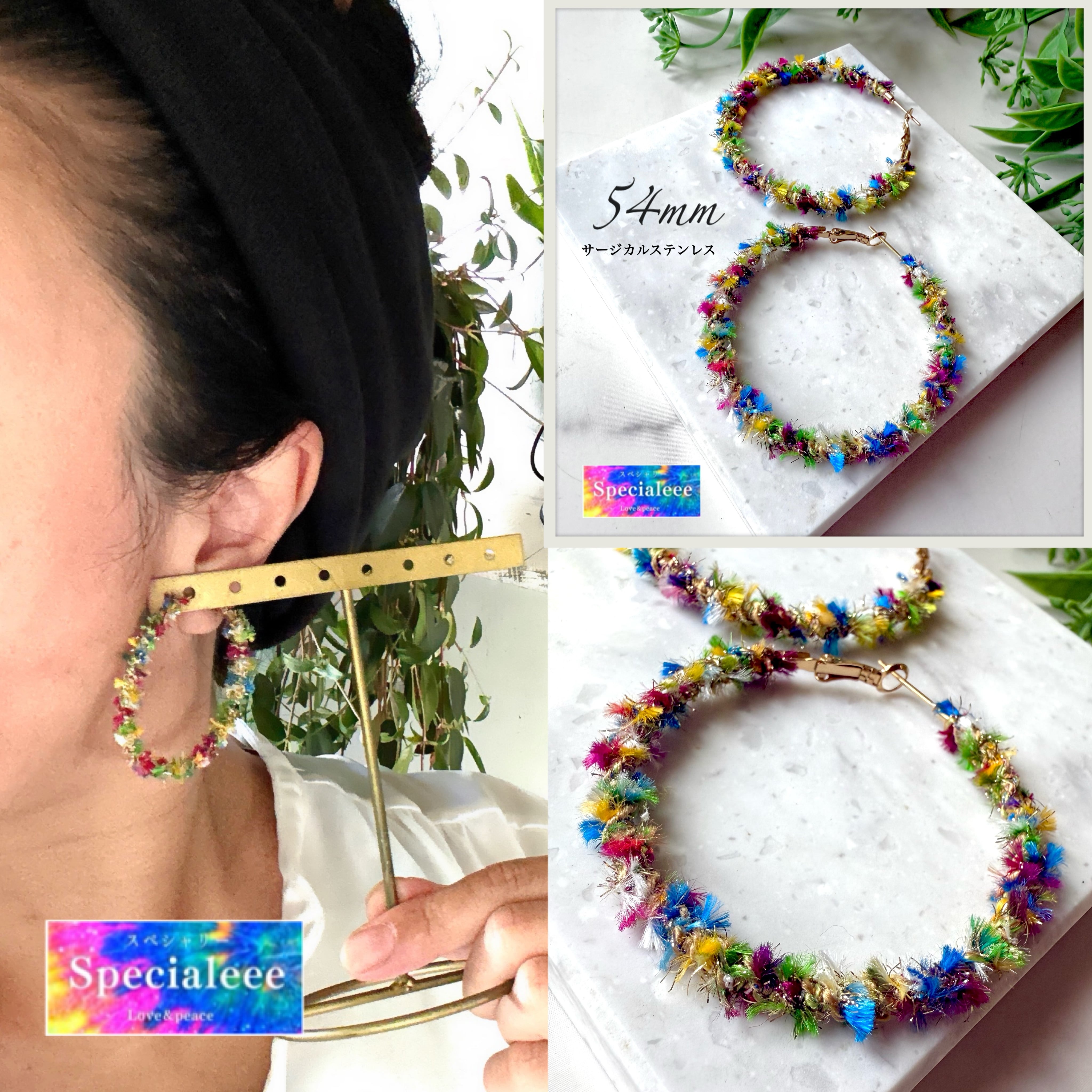 54mm★カラフルふさふさフープピアス★派手可愛い★サージカルステンレス★大ぶり★大きめ★