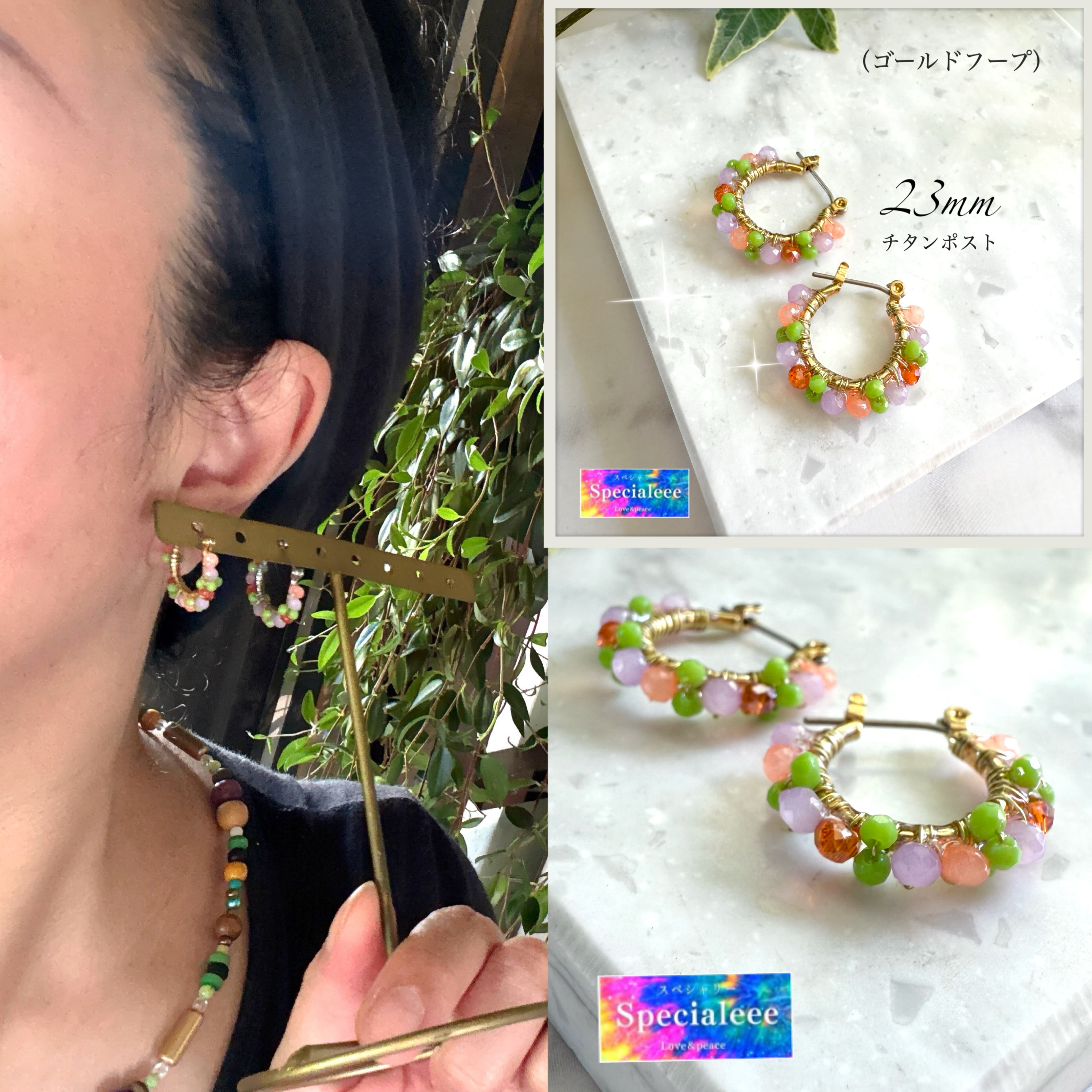 23mm★小さめでもお洒落カラフルフープピアス★チタンポスト★シルバー★ゴールドもok★キラキラビーズ★