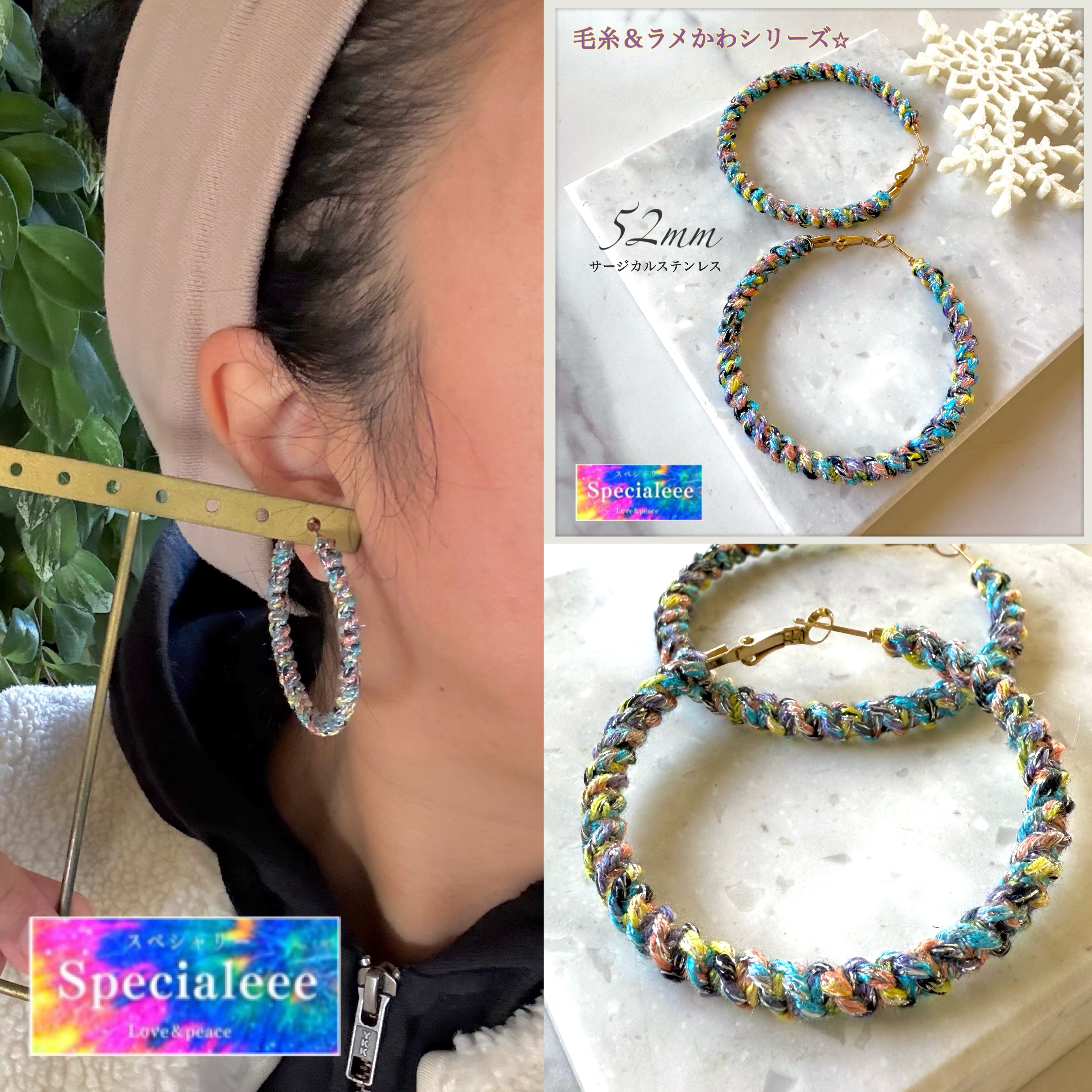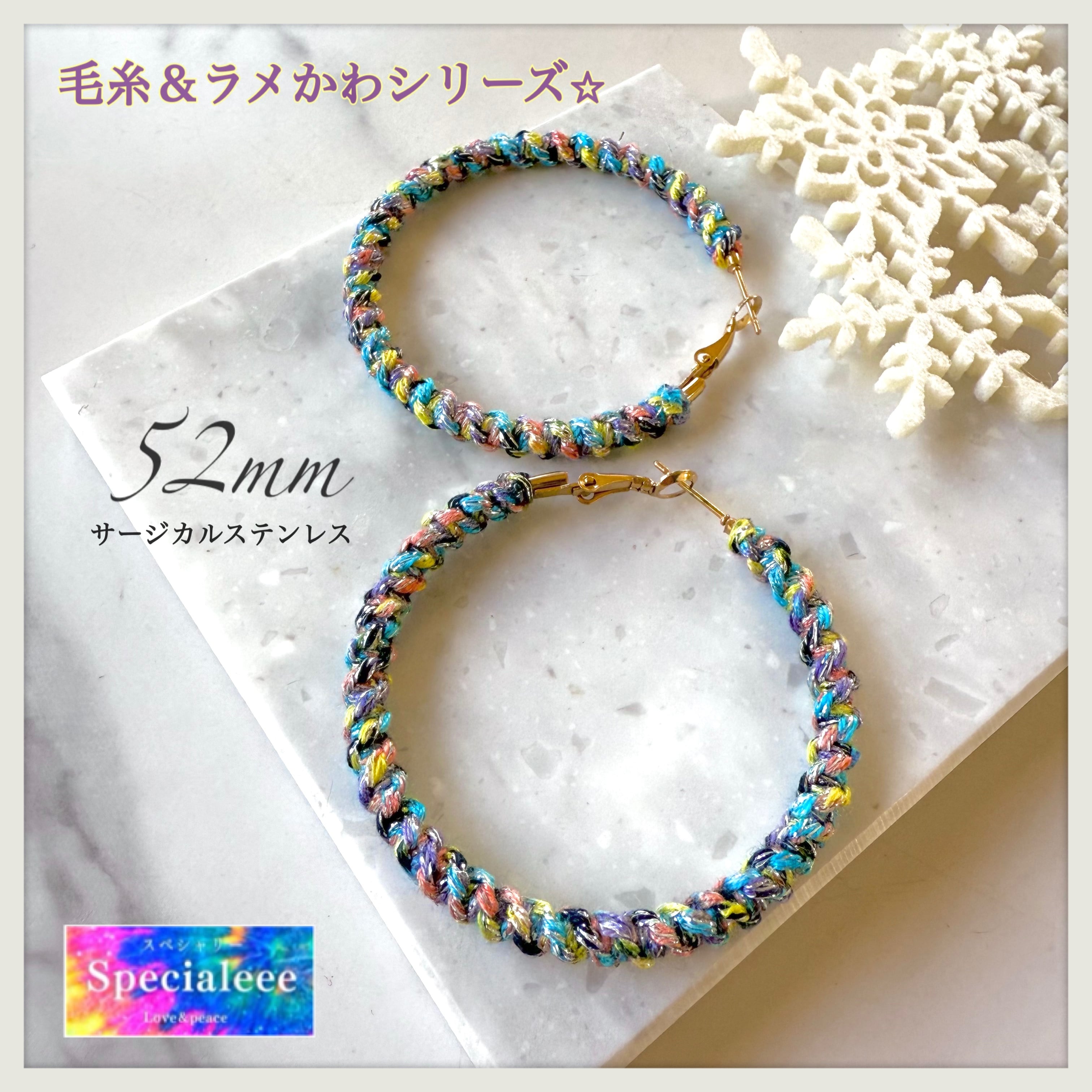 52mm★毛糸&ラメ編みシリーズ★カラフルミックス★サージカルステンレス★お洒落と個性★冬から春先まで可愛い★