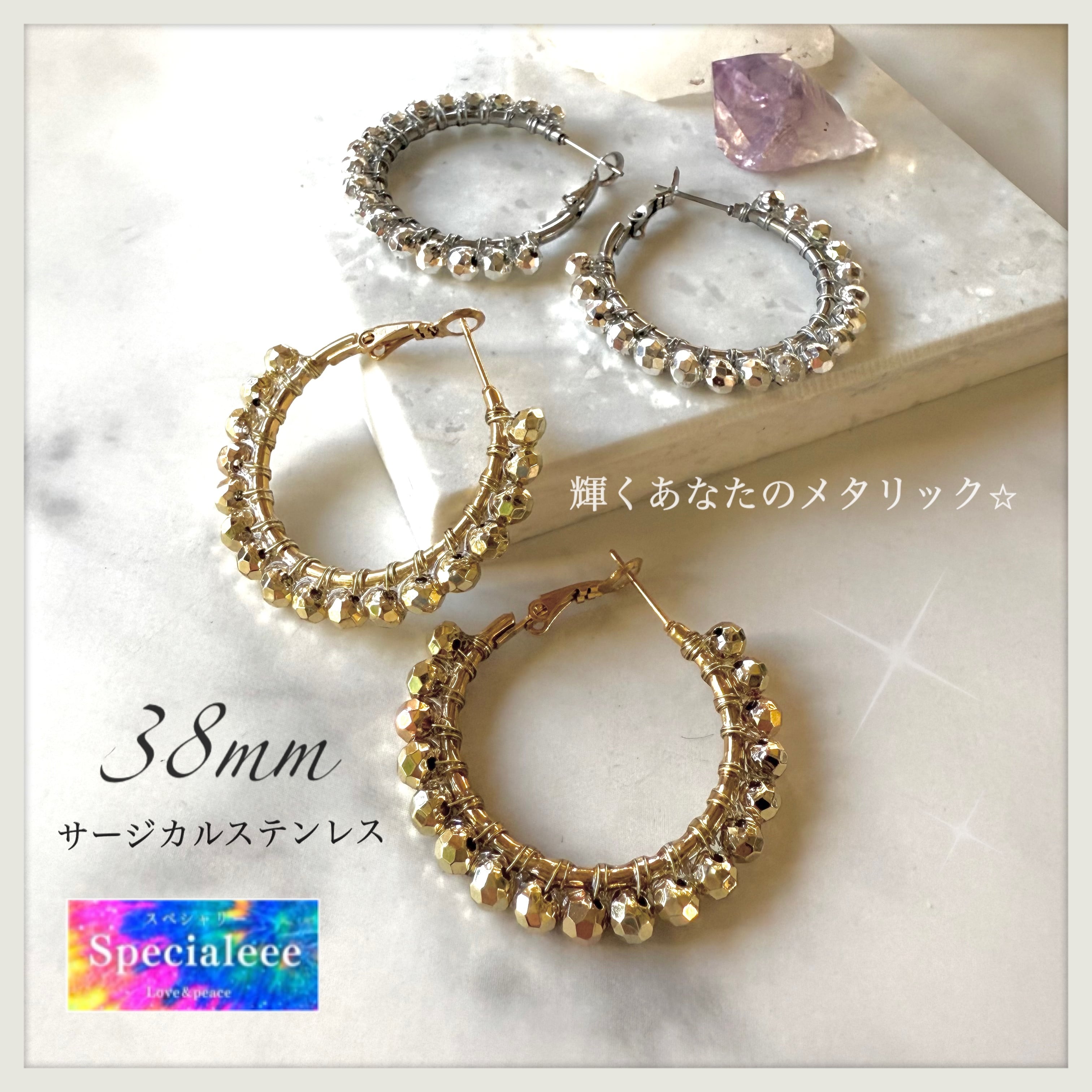 輝くメタリックシリーズ★シルバー完売☆ゴールドあります!38mmインパクトフープピアス★ゴールドかシルバー★アレルギー対応サージカルステンレス★存在感と個性★