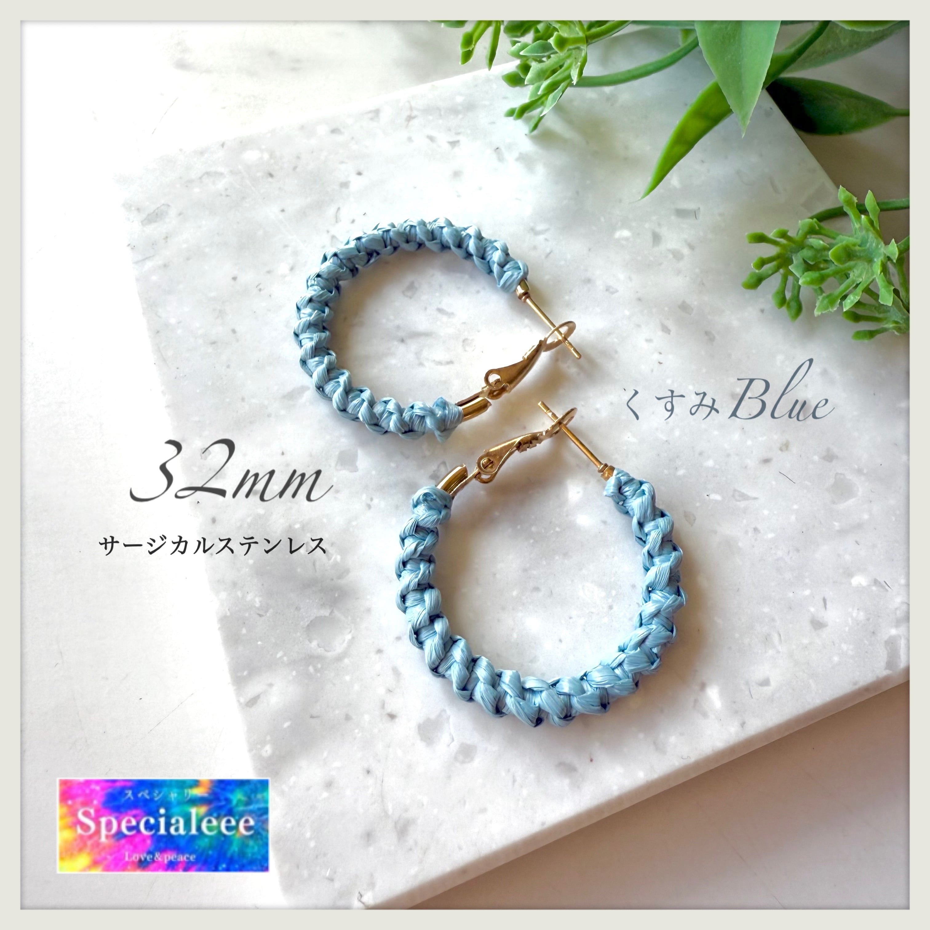 32mm★くすみ水色ブルー編みフープピアス★アレルギー対応サージカルステンレス★パステル★お洒落可愛い★