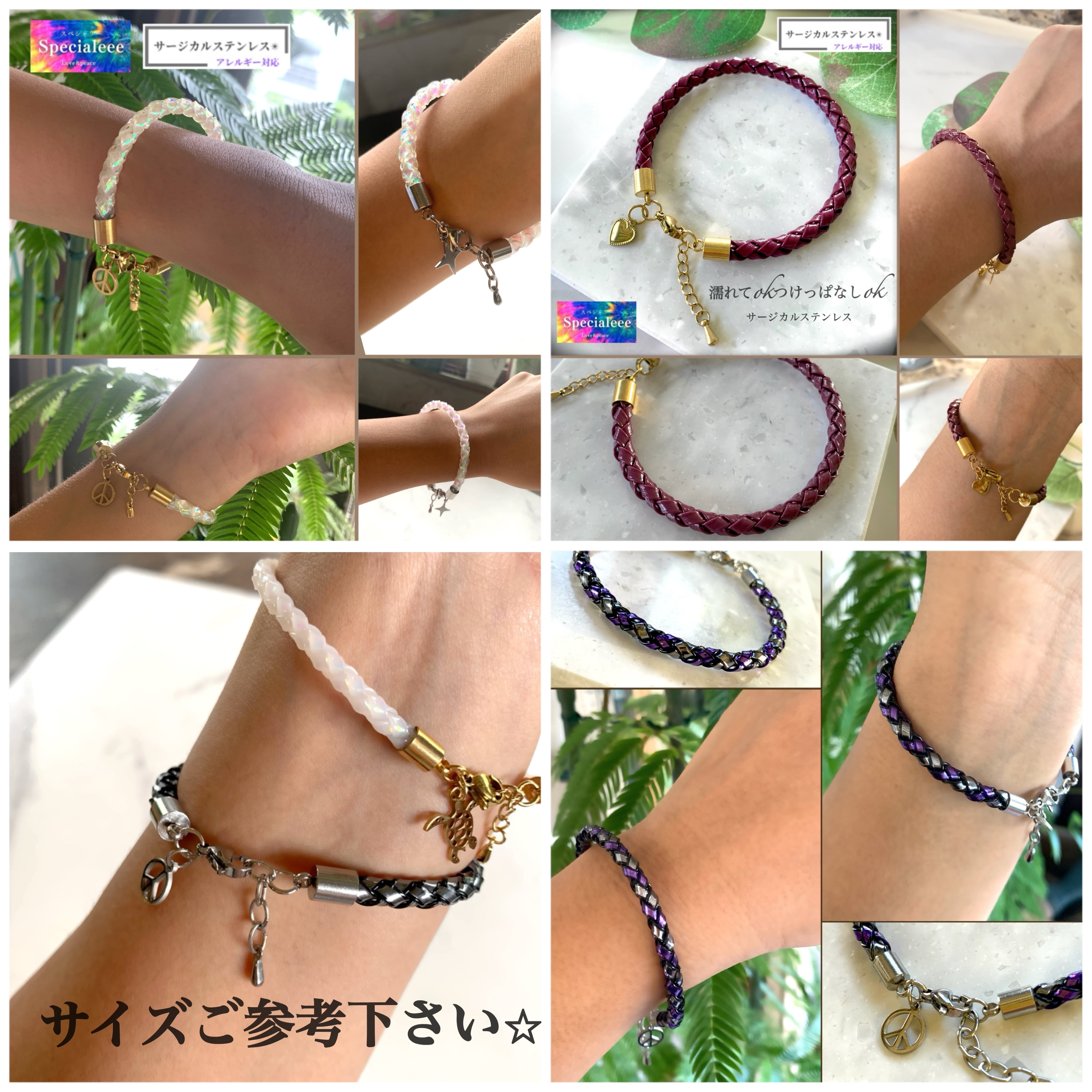 アレルギー対応サージカルステンレス&防水オリジナルブレスレット登場☆錆びない つけっぱなし 手編み オーロラ ホワイト ブラック ゴールド メタリック 収納BOX付き☆ハンドメイドアクセサリー