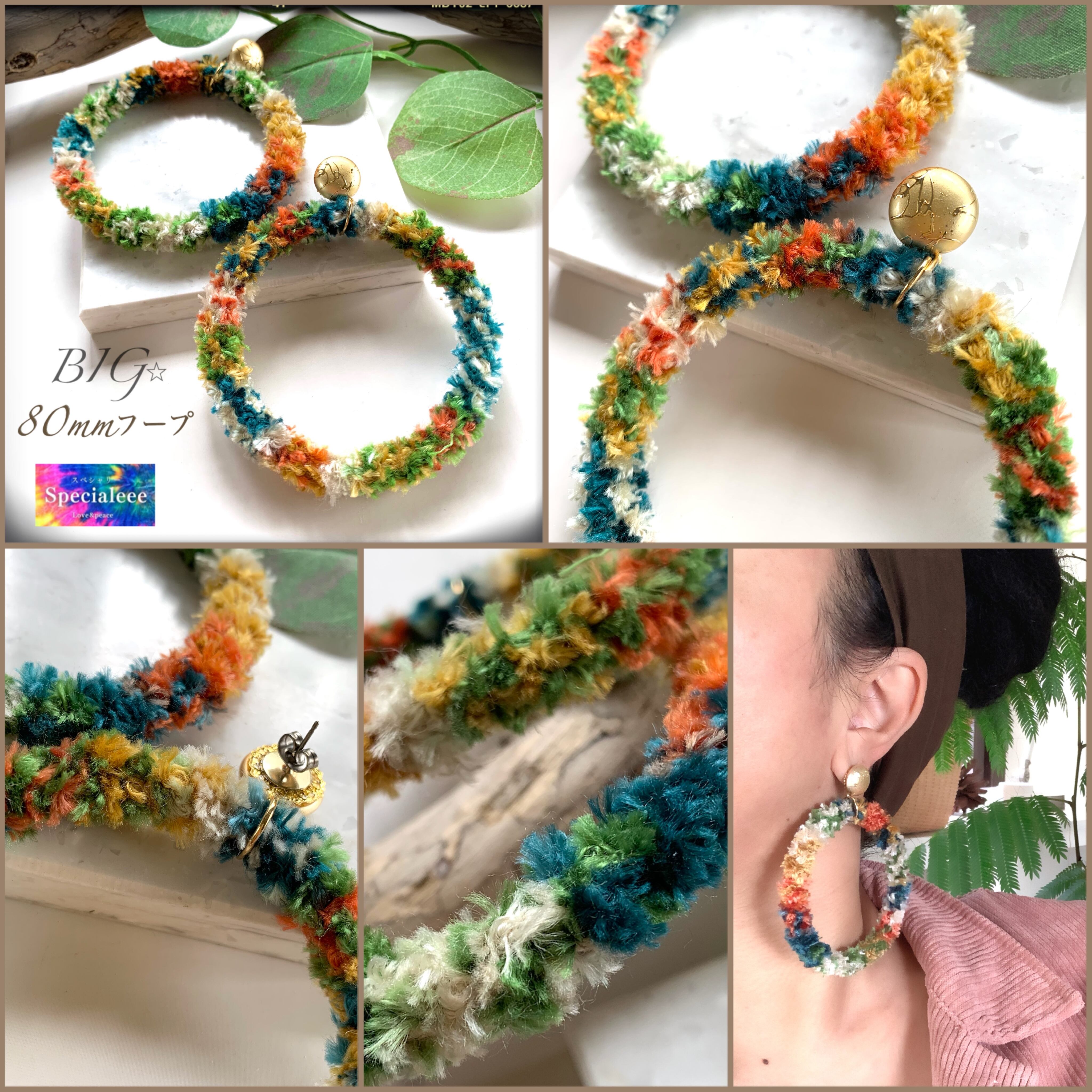 80mm★アレルギー対応チタン★秋冬もこもこ編みインパクトフープピアス★イヤリングok★派手 個性 お洒落specialeee ハンドメイドアクセサリー