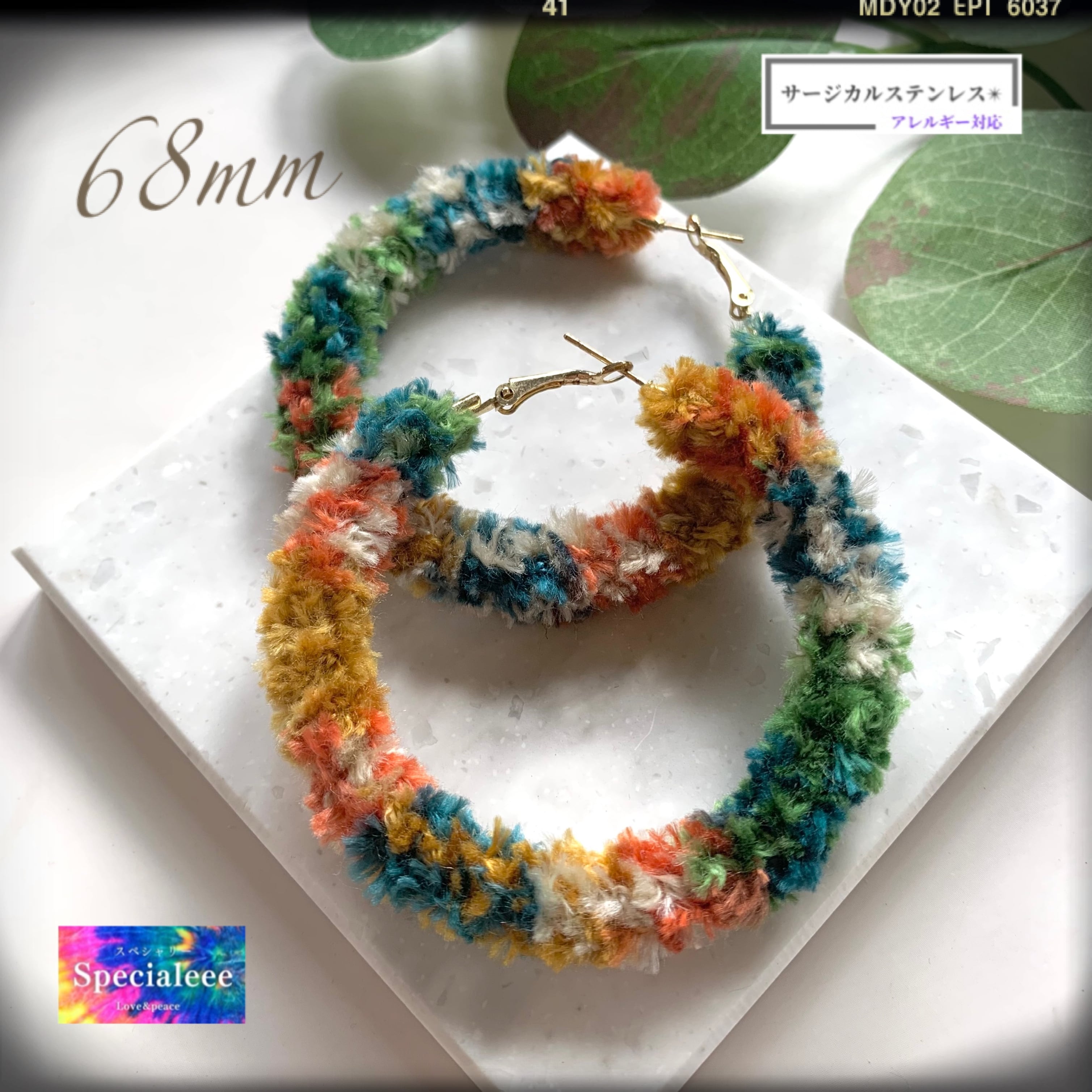 アレルギー対応サージカルステンレスフープピアス★秋冬カラフルふわふわ編み★お洒落と個性★インパクト 大ぶり 大きめ★手編みspecialeee ハンドメイドアクセサリー